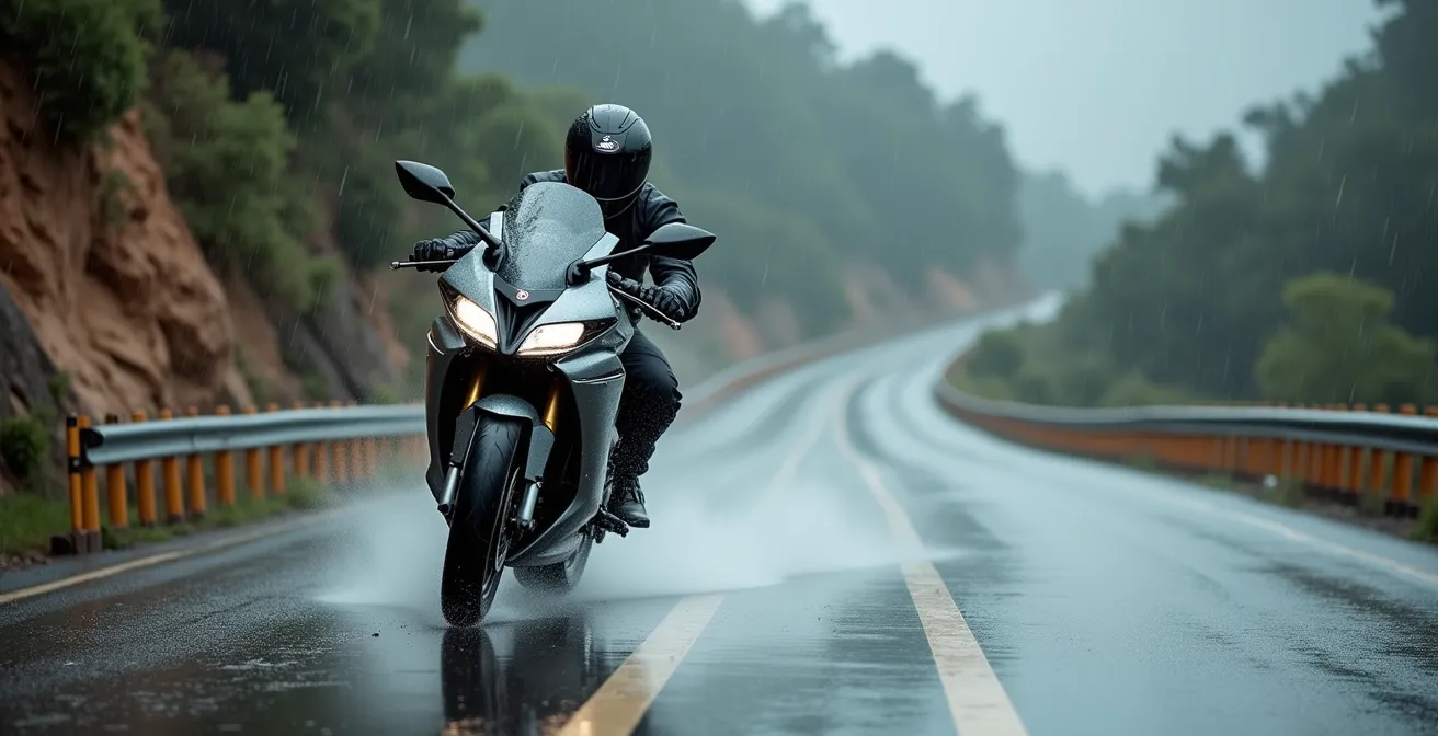 Cuando la lluvia convierte el asfalto en un espejo traicionero, todo motorista se enfrenta a la misma duda: ¿confío en mi habilidad o en la tecnología que llevo bajo el asiento? Muchos conductores experimentados, acostumbrados a «sentir» la moto, ven el ABS en curva y el control de tracción como un sobrecoste, una niñera electrónica para novatos. Creen que con prudencia y buena técnica es suficiente. Esta visión, aunque respetable, ignora una verdad fundamental desde el punto de vista de la ingeniería de seguridad: estas ayudas no están ahí para suplir tu falta de pericia, sino para gestionar la física del accidente en esos milisegundos en los que tu cerebro aún no ha procesado el peligro.