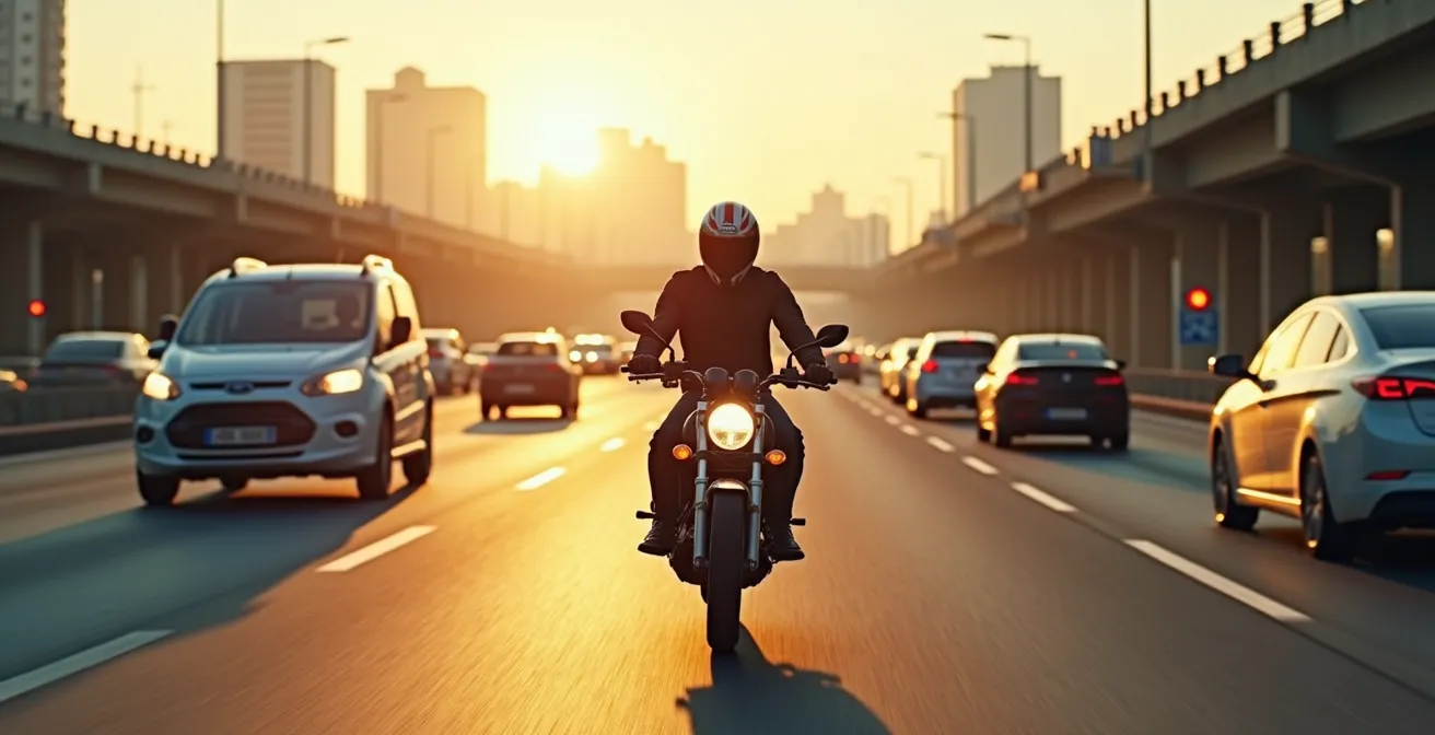 La experiencia en formación de motoristas para tráfico denso me ha enseñado una verdad crucial. Pero ¿y si el enfoque estuviera equivocado? ¿Y si la verdadera clave para la supervivencia y el confort no fuera reaccionar mejor al peligro, sino desmantelar los riesgos antes de que lleguen a existir? La seguridad en vías rápidas no se basa en el instinto, sino en una ciencia de la anticipación. Se trata de pasar de ser una víctima potencial del entorno a convertirse en un gestor activo de tu propia «burbuja de control». Esto implica entender la física detrás de un adelantamiento con viento, la psicología tras un error de cálculo en la frenada y la neurología de cómo el ruido afecta a tu capacidad de decisión.