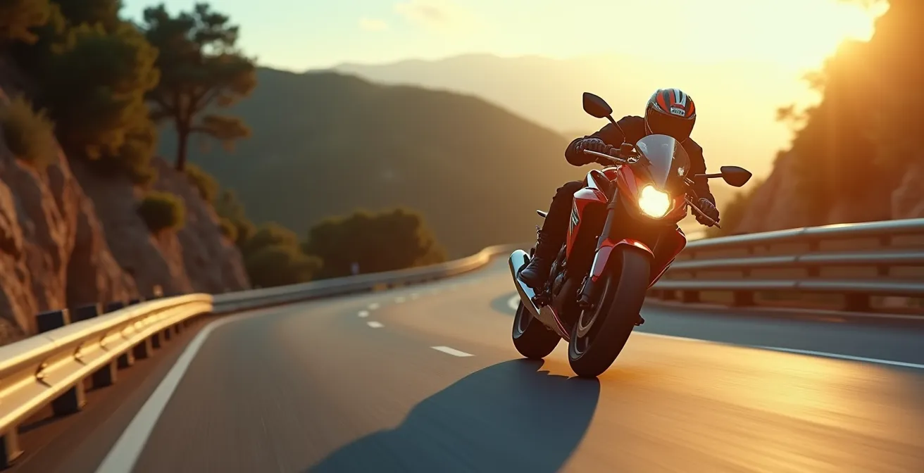 Este artículo no va a repetirte que «mires lejos». Va a desvelarte por qué tu cerebro te traiciona y te entregará un arsenal de técnicas de reprogramación atencional y anclajes posturales. Descubrirás que el control no reside únicamente en tu mente, sino en la conexión entre tu cadera, tu barbilla y tus ojos. Vamos a enseñarte a «hackear» ese reflejo de supervivencia para convertirlo en una herramienta de precisión, permitiéndote guiar la moto con la serenidad y la seguridad de un piloto que no lucha contra su cerebro, sino que lo dirige.